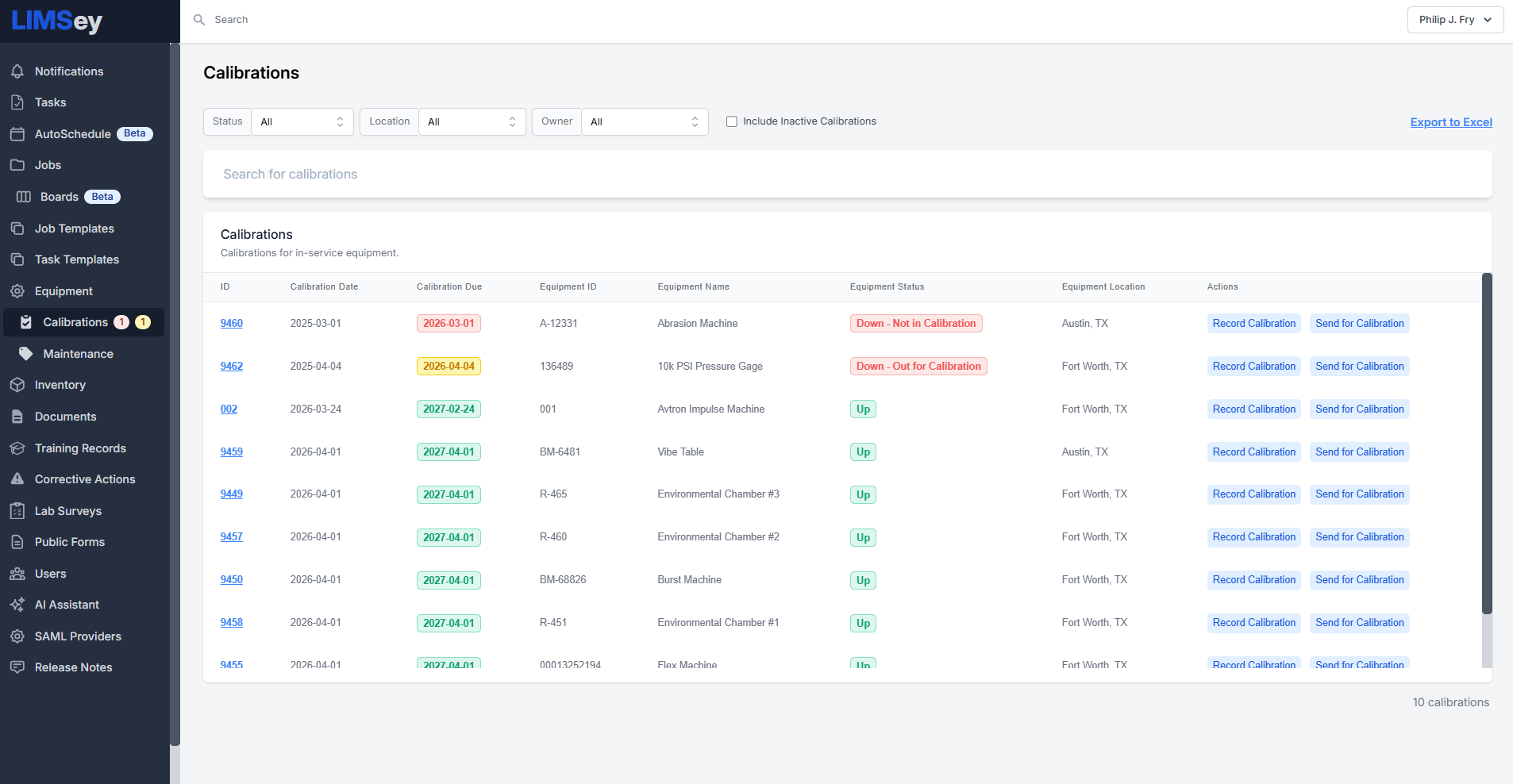 LIMSey automatically tracks calibration expiration dates, flags equipment as out-of-calibration when it lapses, and notifies you before the next one is due. If equipment fails its as-found condition at recalibration, you can immediately trace every job and task it was used in — so you know exactly what’s affected before your auditor does.